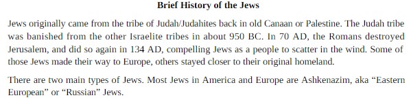 Below I’ll present just some of the ANTI-SEMITIC material I’ve reviewed in the past hour, utilizing nothing but very simple internet searches. I’ll warn the reader right now that the material I’m about to share is indeed very racist and offensive and should not be taken lightly by the viewer, especially considering that there is a very real history of expulsion, ridicule, and murderous violence suffered by people of Jewish faith and ethnicity in the no so very distant past.