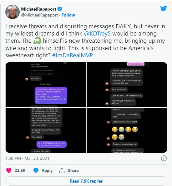 Michael Rappaport went on a tangent against Kanye West. I don’t care if he’s Jewish and passed the bar or not.. He’s always been Remy to me and always will be typecast as that awkward white supremacist he played in the “Higher Learning film”. He’d have done better keeping his mouth shut, mostly because I don’t think he has any sort of following that matters in the current decade. At all. All I hear is Remy. I’d say nothing his mouth said in the 15 or so minutes he “shock jocked” was helpful for anyone trying to understand the negativity and bigotry involved in anti-Semitism. All of the trash talk against Kim Kardashian who is currently a successful businesswoman and fashionista was extremely low. Saying “Pistol Pete” reamed her and all of the other obscenities was unnecessary and disrespectful. I suppose he wants his viewers to feel his rage and justify his stupidity because Kanye also goes on unhinged tirades. Michael Rappaport must want people to see that he’s crazy too.. or something like that? I’m sure he’d not appreciate it if some basketball player was digging in his wife.. and bragging about it. Be a better man Remy. Nobody likes you.